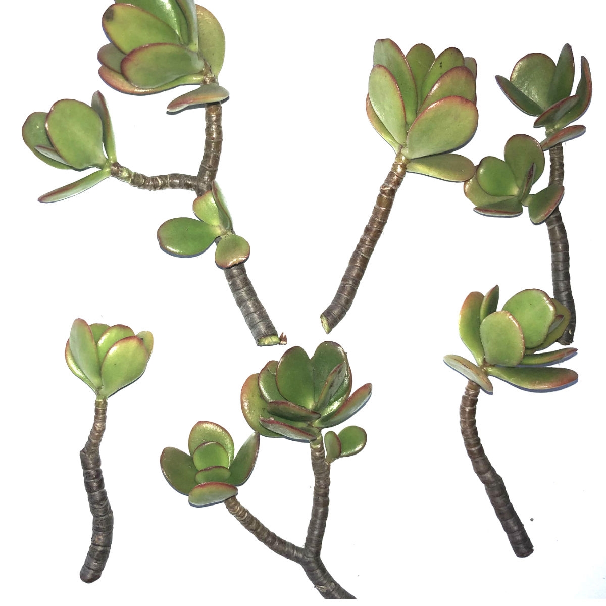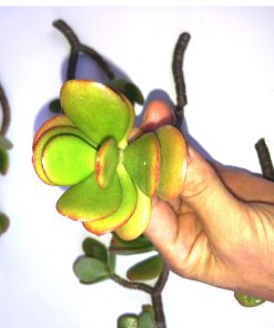 Jade succulent pant, or Crassula ovata makes a great indoor potted plant or outdoor potted or in ground shrub. Its beautiful shiny leaves sprout from thick branches and can flush red at the edges when exposed to direct sun. Jade is native to South Africa and Mozambique where it grows en masses on rocky slopes, reaching up to 8-feet tall. If growing Indoors or in small pots the jade plant will remain small bonsai size.
