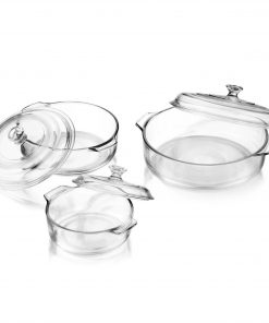 - Pieces Included: 3 round glass casserole with glass cover