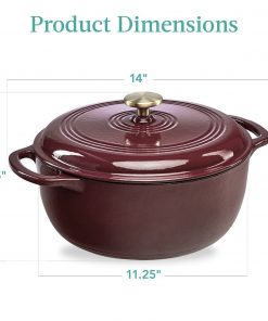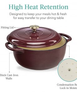 6 Quart Large Maroon Cabernet Red Enamel Cast-Iron Dutch Oven Kitchen Cookware