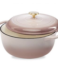 6 Quart Large Pink Beige Off-White Enamel Cast-Iron Dutch Oven Kitchen Cookware