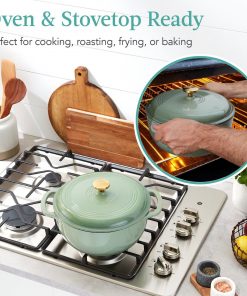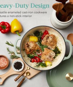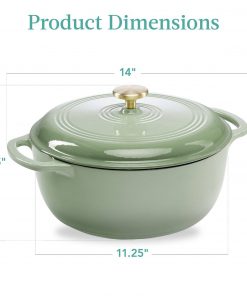 6 Quart Large Sage Green Enamel Cast-Iron Dutch Oven Kitchen Cookware