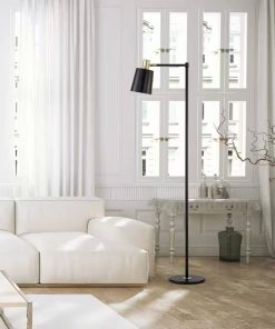 - Industrial Luxe: clean geometric lines with an industrial Black finish are highlighted by luxurious Gold accents to bring the lex floor lamp into a luxurious yet industrial design