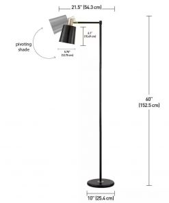 With careful attention to detail, we have created a perfect example of simplicity meeting functionality with the 60-inch Industrial Modern Black Metal Floor Lamp with Gold Accents. A Black finish pairs beautifully with clever gold accents to highlight the simple construction of clean, geometric lines giving this floor lamp a perfectly industrial luxe look. Sitting at five feet tall, this is an ideal lamp for a reading nook or a living room couch. An in-line on/off switch is super convenient while the five-foot cord ensures that you can place your lamp wherever you need it most. Warm and welcoming, the lex floor lamp complements any décor so you can enjoy it for years to come. Requires one E26/medium base bulb (sold separately).