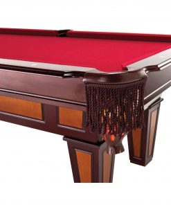 This 7 Ft Pool Table with Red Burgundy Wool Top and Fringe Drop Pockets would be a great addition to your home. It has white diamond inlays, fringe drop pockets and a burgundy wool cloth top.