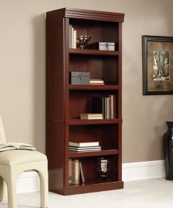 Warm and inviting, this bookcase has been designed for those seeking a classic English look to complement any home or office decor. Beautiful cherry laminate finish. Unquestionably executive in appearance, this bookcase offers the durability of a heat, stain and scratch resistant work surface. For your convenience, the bookcase includes adjustable shelves. Complete assembly instructions included.