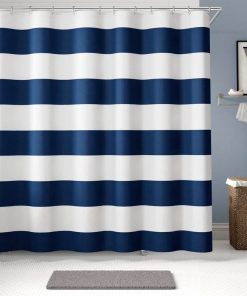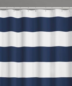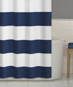 Take a splash with this 72 inch Height Polyester Navy White Nautical Striped Shower Curtain. Give that spa-worthy space a splash of style. 100% polyester fabric, this decorative shower curtain features a canvas-inspired construction for a hint of nautical flair. While its 2 neutral tones may seem simple, this design is anything but with its bold stripe motif. Whether water leaves the tub or your shower needs a refresh, you’re in luck this nautical striped shower curtain is easy to install with shower hooks or rings thanks to its button-hole top construction. Machine washable so you can make it look like new in only moments.