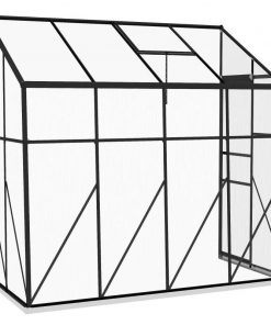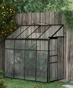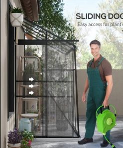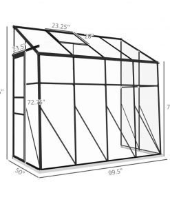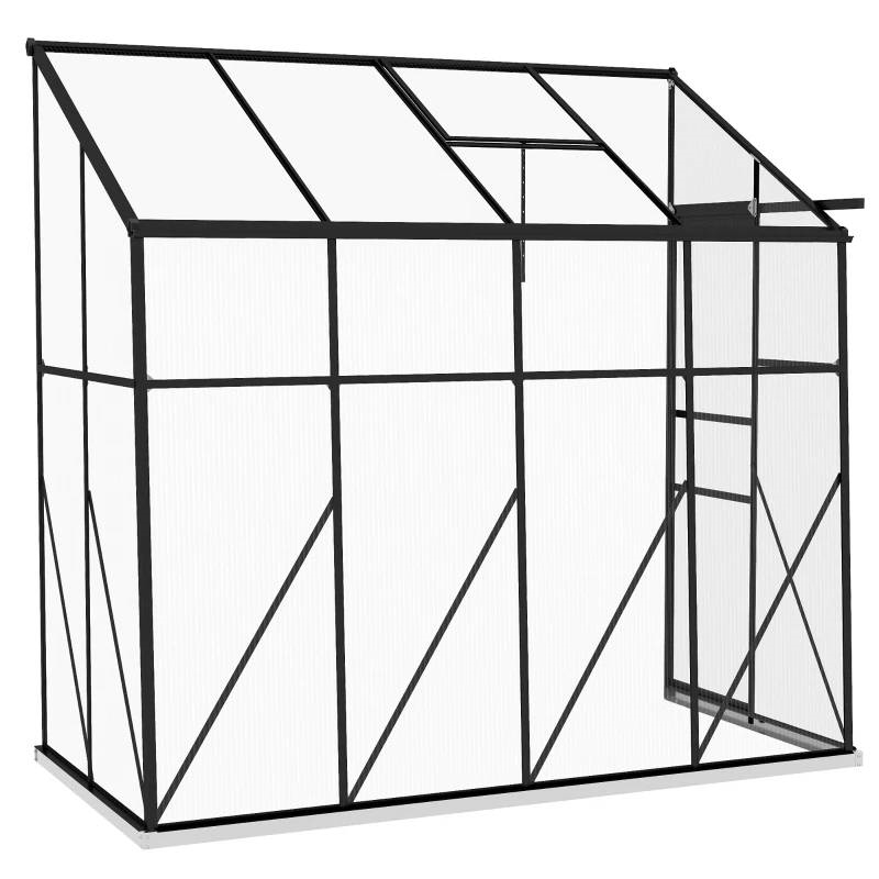 Want to grow better? Go with this 8.3 ft x 4.1 ft Outdoor Polycarbonate Lean-to Greenhouse with Black Metal Frame. Our spacious walk-in, lean-to greenhouse features twin-wall polycarbonate to protect plants from wind, cold, rain, UV scorching, and wild animals. Lean our greenhouse up to an existing structure such as your house, fence, shed, or garage. When you do, it will gain supplemental strength. A sliding door makes it convenient to enter, and there’s an adjustable vent on top; together, they give you greater control over humidity inside.