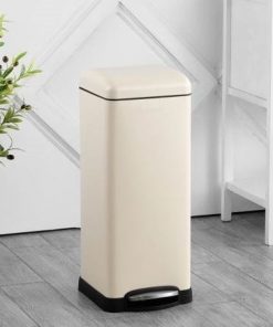 This 8 gL Retro Off White Steel Step On Garbage Trash Can hides plenty of capacity within its slim size, making it a great choice for home offices, craft rooms, laundry rooms, and other small spaces. Featuring a profile hinge and retro silhouette its sleek design allows it to sit close to a wall or cabinet. Its design features don’t end there it is finished in powder-coated stainless steel, features a steel step-on mechanism that allows for smooth openings and closings, and has a removable plastic liner that makes the bag changes a cinch.