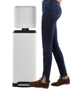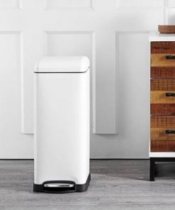 This 8 gL Retro White Steel Step On Garbage Trash Can hides plenty of capacity within its slim size, making it a great choice for home offices, craft rooms, laundry rooms, and other small spaces. Featuring a profile hinge and retro silhouette its sleek design allows it to sit close to a wall or cabinet. Its design features don’t end there it is finished in powder-coated stainless steel, features a steel step-on mechanism that allows for smooth openings and closings, and has a removable plastic liner that makes the bag changes a cinch.