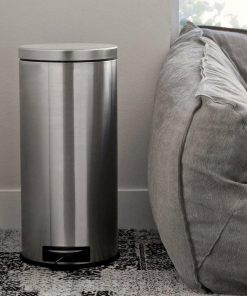 This well designed and engineered 8-Gallon Round Stainless Steel Step Trash Can Kitchen Bathroom Home Office suitable in any area of your home. The Slim design allows it to fit in areas like kitchens, offices, living rooms, restaurant bathrooms, bedrooms, dorm rooms or any open space. The removable bucket liner feature allows you to keep the bag hidden from public view to maintain a neat and clean appearance.