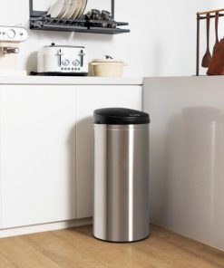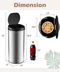 This 8-Gallon Stainless Steel Motion Sensor Trash Can Kitchen Home Office Waste Bin would be a great addition to your home. Large capacity of 8 gal, which is suitable for trash bags of 21″ x 29.5″. Sensitive motion detection for accurate capturing within 8″. Soft close design allows for 0.2s quick response and 5s quiet close. Comes with a control panel to ensure simple manual control. Press “Open” to make the trash can stay open for ample cleaning time. Press “Close” to make the waste bin slowly close to block weird smells. Superior stainless steel frame is rustproof, reinforced and easy to clean. Consists 3 layers, stainless steel layer, drawing wire layer and anti-fingerprint layer. Fitted with the battery box and the back power switch for quick setup. The lid features grooves for opening, making it easy to use. Can be disassembled into a lid, a retainer ring and a body.
