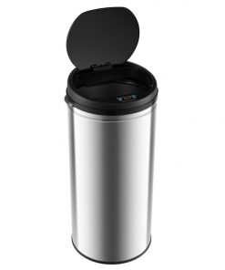 This 8-Gallon Stainless Steel Motion Sensor Trash Can Kitchen Home Office Waste Bin would be a great addition to your home. Large capacity of 8 gal, which is suitable for trash bags of 21″ x 29.5″. Sensitive motion detection for accurate capturing within 8″. Soft close design allows for 0.2s quick response and 5s quiet close. Comes with a control panel to ensure simple manual control. Press “Open” to make the trash can stay open for ample cleaning time. Press “Close” to make the waste bin slowly close to block weird smells. Superior stainless steel frame is rustproof, reinforced and easy to clean. Consists 3 layers, stainless steel layer, drawing wire layer and anti-fingerprint layer. Fitted with the battery box and the back power switch for quick setup. The lid features grooves for opening, making it easy to use. Can be disassembled into a lid, a retainer ring and a body.