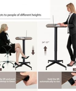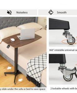 The Sturdy Adjustable Mobile Standing Desk Large TV Tray with Lockable Wheels comes with a premium gas lift that allows you to adjust the table height to your preference from 24″-37″. When you want to sit at work, you can hold the lift and push the desktop to the lower. Featuring a raised cross-shaped base, the multipurpose rolling overbed table can be easily slid under the bed or sofa for convenient eating, working, reading, or studying. Supported by a sturdy aluminum frame, the mobile bedside table is stable, not easily deformed and crack-resistant. With detailed instructions and simple installation steps, the medical bedside table can be quickly assembled. Constructed of high-quality material, the 36 x 19 x 24-37(L X W X H) sit-to-stand desk is capable of serving you for a long time.
