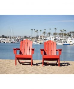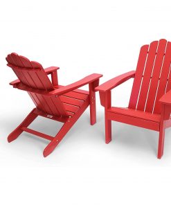 Relax in style with classic comfort and extra roomy All Weather Recycled Red Poly Plastic Outdoor Patio Adirondack Chairs – Set of 2. These all weather Adirondack chairs provides a perfect place to take in the beauty of your backyard while enjoying your morning coffee or catching some rays at the beach. A curved backrest allows you to comfortably lean back and relax. Also designed with wide arms to offer a place to perch a drink as well as rest your hands. These chairs are made of all weather HDPE recycled material, so you won’t have to worry about rot, splinters, chipping, peeling, or cracks. These sturdy all weather Adirondack chairs are built to withstand sun, snow, and even strong winds. No painting, staining or waterproofing required to hold up to the outdoor elements.