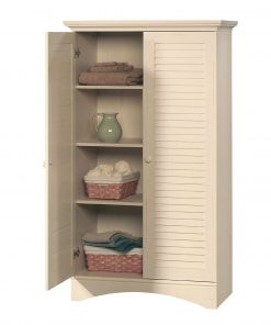 The perfect easy-living cottage look. Louvered door panels, turned wood feet and worn wood knobs complete this vision of warmth and charm. This Vintage Antique White Wood Finish Wardrobe Armoire Storage Cabinet with Louver Doors has soft hints of brown grain that will complement most room settings. Using the adjustable shelves you can have hidden storage for any size item. Perfect for any room in the house.