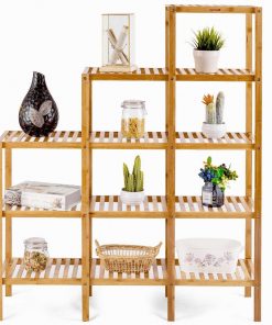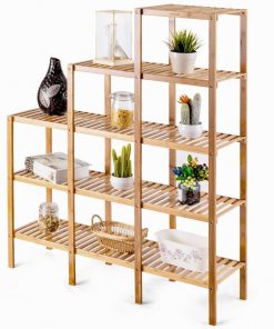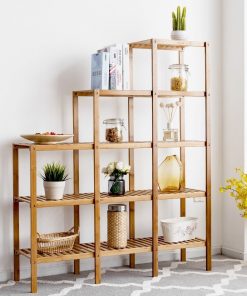 Combining solid bamboo construction with a tidy and practical style, this Bamboo Wood 5-Tier Versatile Bookcase Plant Stand Storage Rack makes a fresh and clean addition to the room. The whole shelf is being designed scientifically and elegantly, which can provide enough room for all kinds of ornaments. You can put whatever you want on the shelf, such as plants, books, toys, models, and so on. With its simple and primitive furnish, it is classic enough to stay in style no matter how the furnishings around it change. It can be set in the living room, bedroom, balcony or anywhere place as you want it to be. This special display stand shall bring you with a unique user experience, just bring it home today!