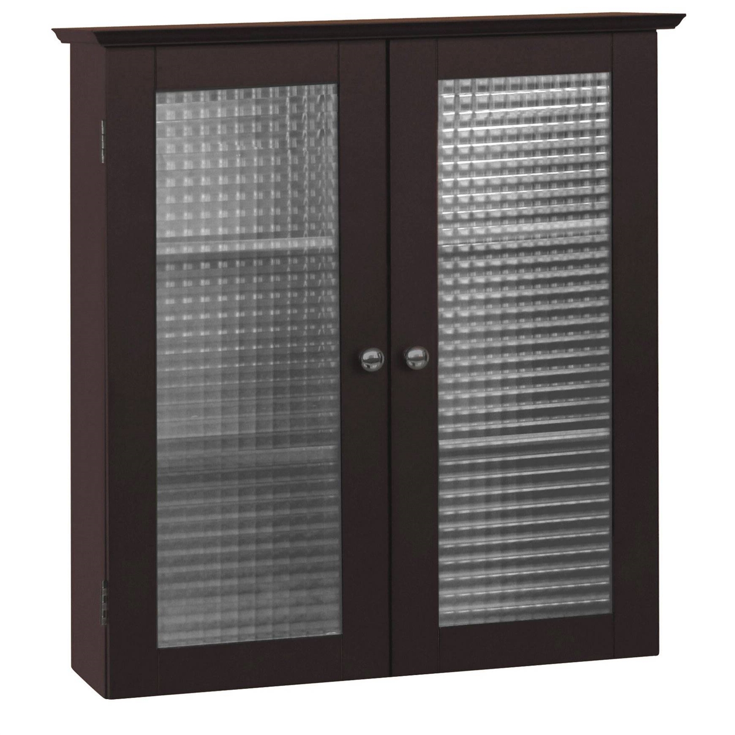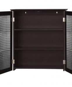 - Dark Espresso Bathroom Wall Cabinet with Two Glass Doors