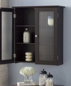 This dark espresso finish Bathroom Wall Cabinet with Two Glass Doors will add an attractive storage space to any bathroom. Also, provides much-needed room for toiletries and towels.