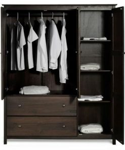 Bedroom Wardrobe Cabinet Storage Closet Organizer in Dark Brown Oak Finish