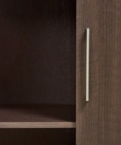 Designed to be the centerpiece of any office, this Beroom Wardrobe Cabinet Storage Closet Organizer in Dark Brown Oak Finish gives you a fullfeatured work station in a convenient, allinone package. Combining elements of both traditional and contemporary design, the Beroom Wardrobe Cabinet Storage Closet Organizer in Dark Brown Oak Finish is a welcome addition to any office or home. The fullwidth slideout top surface acts as a keyboard tray for your laptop, bringing it closer for easier keying. Underneath the sliding top is a threesection charging area for laptops, tablets, phones any portable electronic device. Charging areas have grommets for easy power and data cable routing. It also offers generous storage space with two doored cabinets that have an adjustable shelf in each, and a pullout printer shelf. Back of unit is unfinished must be placed against a wall. With a rich Select Cherry finish, and half and full round architectural columns, It brings you classic traditional warmth. Brushed Silver hardware brings a contemporary flair, and ensures these stunning pieces will be the perfect complement to any decor.
