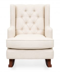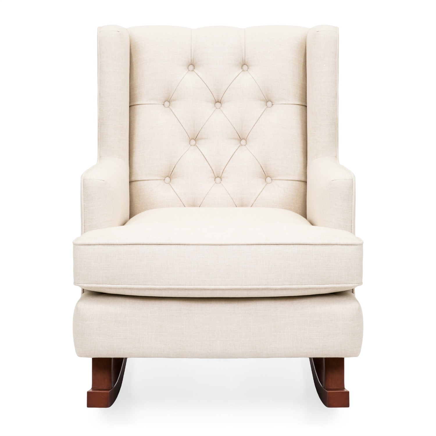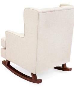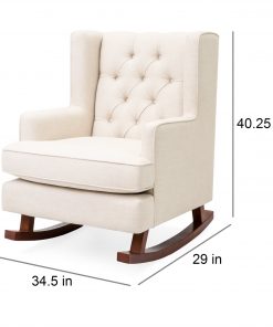 Rock into winter with this Beige Soft Tufted Upholstered Wingback Rocker Rocking Chair. The modern design adds an element of elegance to your living space, while its soft cushioning creates an inviting appeal. This extra soft rocking chair is made of high-quality fabric with a button-tufted backrest to provide increased levels of comfort. Enclosed arm and headrest makes this relaxing furniture piece ideal for rocking little ones to sleep or just nod-off yourself. This sturdy chair is crafted with solid hard wood rails that are specially made to stay still until the user is ready to rock. Get rocking!
