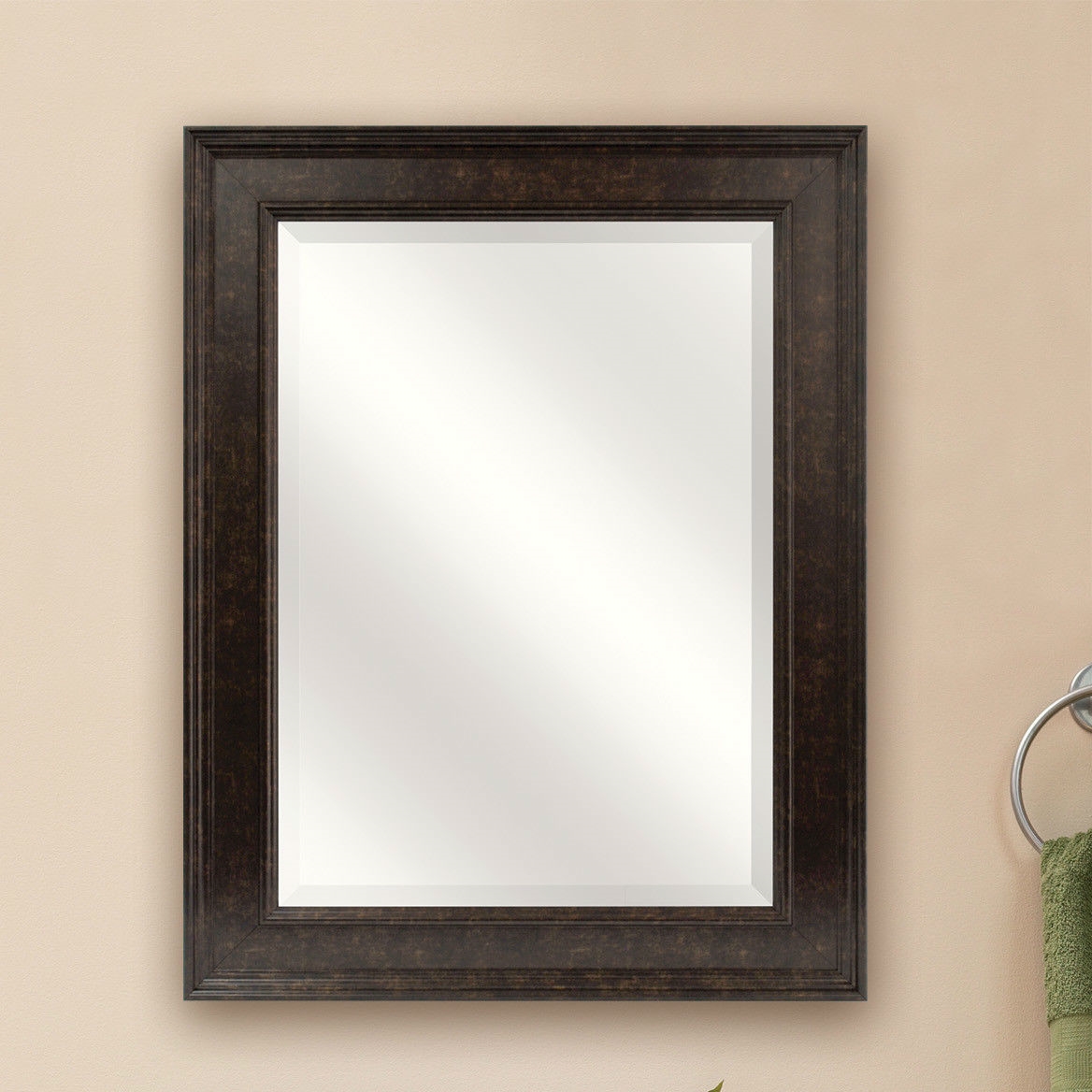 Beveled Rectangular Bathroom Vanity Mirror with Bronze Finish Frame