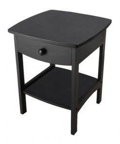 Bedeck your contemporary interiors with this Black 1-Drawer Bedroom Nightstand Contemporary End Table. Simple yet graceful, this nightstand is made out of manufactured wood for strength and durability. Flaunting delicate curves and four straight feet, this nightstand is available in a variety of finishes to choose from. It features one spacious drawer with wooden glides and safety stops that can be used to keep anything from handy utilities to bedtime essentials. This also has a small open shelf at the bottom, which can accommodate your books or magazines. Wipe this nightstand with a clean, dry cloth to keep dust and grime away.