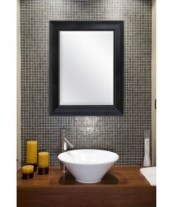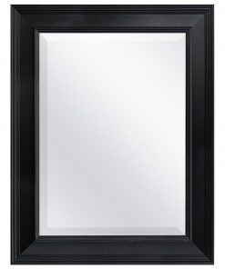 This Black 27.5 x 21.5 inch Beveled Bathroom Mirror with Wall Hangers is framed with classic moldings with foil finishes. The overall size of the mirror measures 21.5 Inches by 27.5 Inches and can be hung horizontally or vertically. The mirror is 15.5 Inches by 21.5 Inches with a 1 inch bevel. Very nice styling fit for bedroom, bath, or living room. The heavy duty hangers are already mounted to the back of the mirror.
