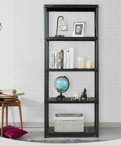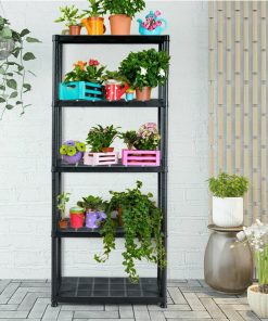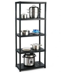 This Black Multifunction 5 Tier Sturdy Polypropylene Storage Shelf is be a perfect addition for any home or office! The boards and tubes of the rack are made of thick and solid plastic, which is sturdy, stable and not easily deformed. It can stand firmly on the floor and is equipped with a large load-bearing capacity. Thanks to its waterproof surface it can be used both indoors and outdoors, allowing you to store and display all of your items. You can choose how many layers you need according to the height of the room. Also, thanks to the connection with the wall, it will prevent the rack and your items from falling forward.