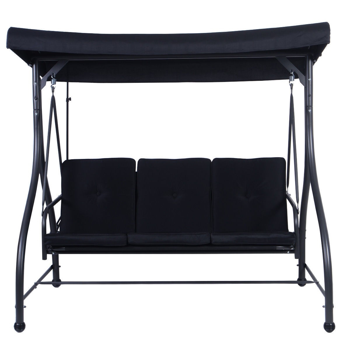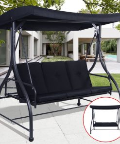 This Black Adjustable 3 Seat Cushioned Porch Patio Canopy Swing Chair seats up to three people comfortably. This item is low-maintenance, easy to assemble, and the fabric is weather and stain-resistant. This canopy is the perfect summer accessory to escape the heat and relax. Our swing will look great in a backyard or front porch. It will definitely bring you much needed relaxation on those hot summer days.