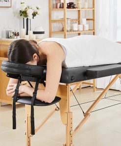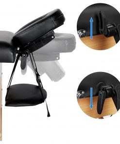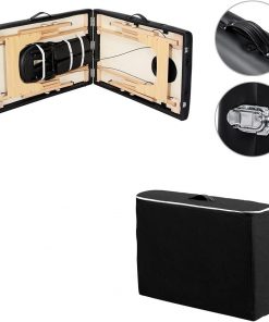Massage Time!! Calm down, relax, and rejuvenate with this Black Adjustable Portable Massage Folding Table. This sturdy table gives you comfortable massage experience. Great for at home use or a professional therapists office, this massage table can meet your requirements. The folding bed is made of beech wood with soft cushion and supported by composite boards. Set up is a breeze, just simply open the case and let bed legs out to the place. The height of the massage table is adjustable from 25 inches to 34 inches by switching the knobs.
