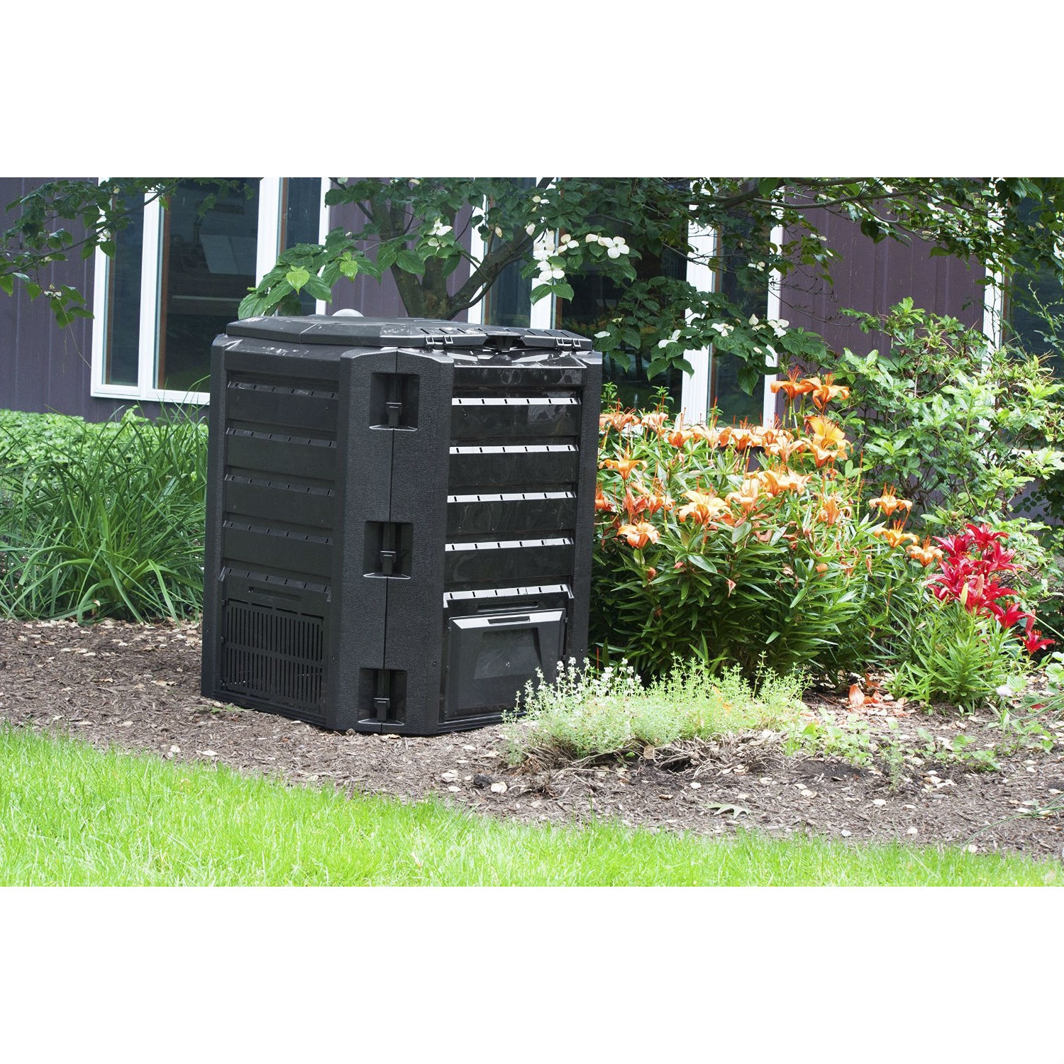 This Black Composter 100-Gallon Compost Bin for Home Composting is a large standing compost bin. It’s one of the few standing bins that requires minimal, tool-free assembly. Created using innovative Polish design, the entire unit snaps together in a matter of minutes. Once assembled, the unit can sit in a garden or in an out-of-the-way location. Simply add composting materials and let nature do the rest. Composting will take anywhere from 1-12 months depending on environmental factors and materials added. Once the compost is ready, simply spread it on the lawn, use as mulch in the garden or combine with potting soil. Your plants will grow like you’ve never seen before. If you want to get started with composting without a large investment, get the Black Composter 100-Gallon Compost Bin for Home Composting.