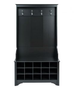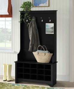 Black Entryway Hall Tree Shoe Cubbie Coat Rack