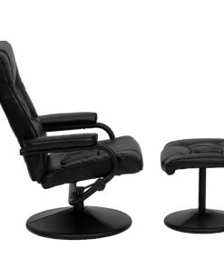 - Black Faux Leather Recliner Chair with Swivel Seat and Ottoman