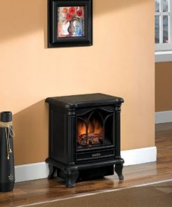 This Black Freestanding Electric Stove Style Fireplace Space Heater adds charm, ambiance and warmth to any room. This stove has a charming picture window with arched frame detailing. The stove can work with or without heat for all-season enjoyment. Product dimensions: 16.25 inches width x 11.61 inches depth x 19.72 inches height; Net Weight: 14.74 lbs.