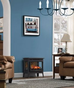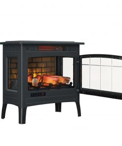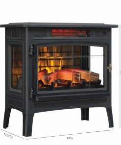 On a cold night, warm up to 1,000 square feet with this Black Infrared Quartz Electric Fireplace Stove Heater. The infrared quartz heat helps to maintain the natural humidity in the air, resulting in comfortable heat that doesn’t dry out the room’s air. This electric stove features a durable metal body construction with side viewing windows and an operable, beveled glass door. Patent pending 3D flame effect technology offers a layered flame effect to create a truly realistic fire experience with five adjustable brightness settings. The realistic flame effect with a glowing log and ember bed can be operated with or without heat, providing the ambiance of a gentle rolling fire all year long. This stove is easy to assemble and can be operated with the control panel on the unit or with the included remote.