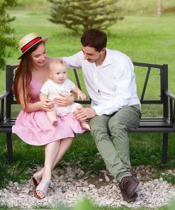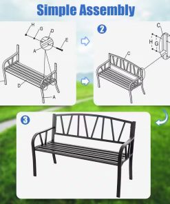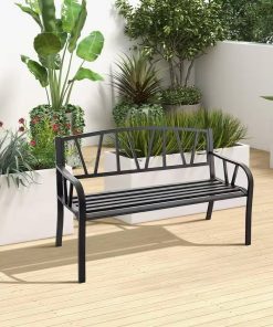 • Black Metal 2-Person Outdoor Garden Bench with Armrest – 660 lbs. Max Weight