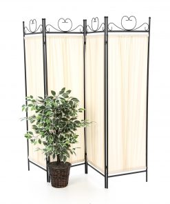 • Black Metal 4-Panel Room Divider with Off-White Fabric Screen