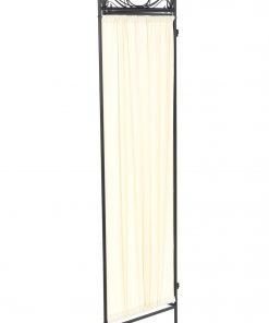 Black Metal 4-Panel Room Divider with Off-White Fabric Screen