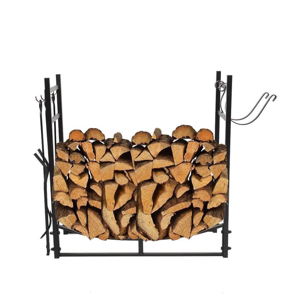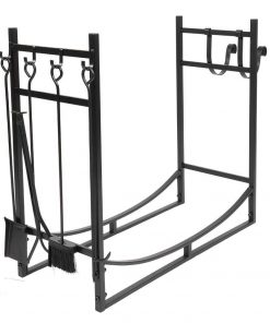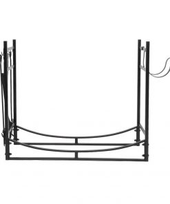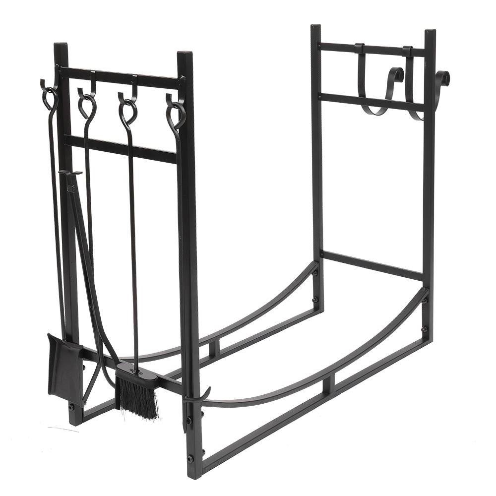 - Black Metal Firewood Holder Log Rack with Poker Shovel Tongs and Broom