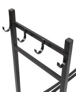 - Integrated hooks on the stand create places to hang the included tongs, poker, broom, and shovel, to maintain the fire safely and easily