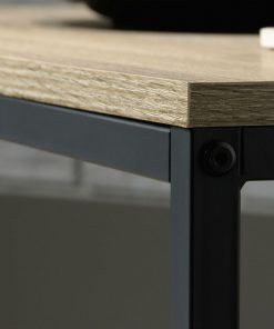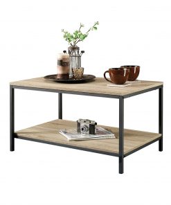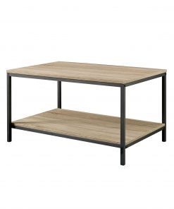 Give your home a chic industrial update with this Black Metal Frame Coffee Table with Oak Finish Wood Top and Shelf. Its spacious tabletop provides you with room for magazines, mail, coasters and of course your cup of coffee. It also features a large, lower open shelf for additional storage and display. Constructed with a durable, black metal frame and finished on all surfaces in Characters Oak, this stylish coffee table will complete the look of your living room.