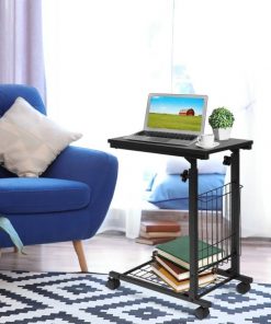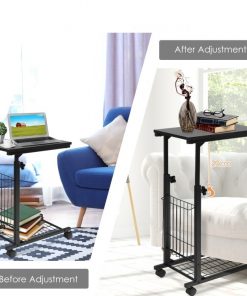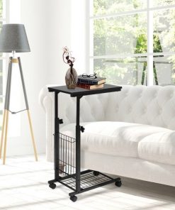 This Black Multipurpose Adjustable Height TV Tray Sofa End Side Table on Wheels can be used as an end table, wheeled computer tray, lamp table, TV tray, etc. Made from 15mm chipboard and sturdy steel frame, the frame with an open, cantilevered design, load capacity up to 55lbs. Compact size, space-saving and light-weight design, this simple stylish side table is functional and suitable for any decor of your room, perfect combination with other furniture accessory. Slides under sofas with ease! Comes with rolling casters ,this snack table easy to slip under sofas, you can reach the items on top without standing, great on both carpet & wooden floors and prevents scratches. Lower steel mesh provided extra storage space for books, magazines , etc.