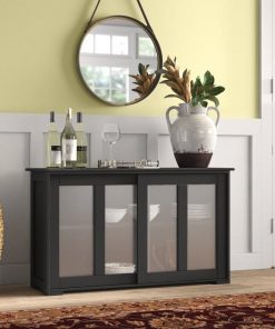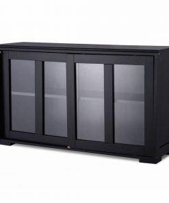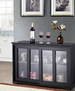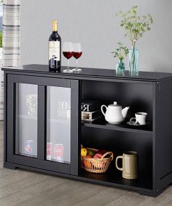 This black kitchen storage server cabinet is the perfect addition to your kitchen or dining room, and provides you with unmatched convenience. Features glass panel sliding doors, this sideboard storage cabinet is great for all your kitchen gadgets and tools. Space saving server cabinet is great for storage or display. Solid wood construction and tempered glass doors will provide you with years of sturdy and reliable use. Host dinner parties, entertain guests, and prepare great homemade meals with this wonderful dining storage buffet cabinet.