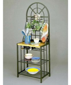 - This black tubular steel Dome Baker’s Rack gives you additional storage space while adding charm to your kitchen or pantry