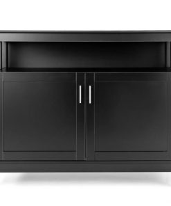 - Black Wood 2-Door Dining Buffet Sideboard Cabinet with Open Storage Shelf