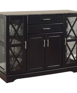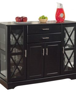 Create more space in your dining room or living room with this Black Wood Buffet Dining-room Sideboard with Glass Doors that will match with any decor. This buffet offers both glass and solid doors a classic style. The X style door features two adjustable tempered glass shelves on each side.