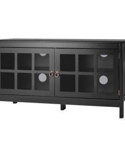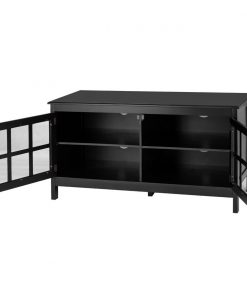 Black Wood TV Stand with Glass Panel Doors for up to 50-inch TV