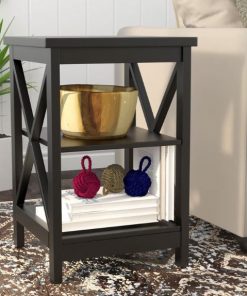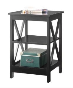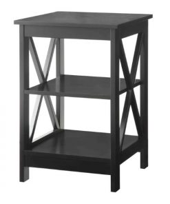 This Black Wood X-Design End Table Nightstand with 3 Open Shelves is an essential in any living room arrangement, end tables act as a perch for lamps, books, and other decorative accents. This design also sets the tone for a traditional space, displaying a clean-lined silhouette and x-shaped side braces for a touch of visual intrigue and increased stability. Crafted from solid and manufactured wood, its three open shelves offer space aplenty for anything you want to keep close at hand in the den.