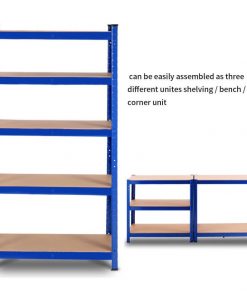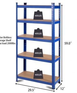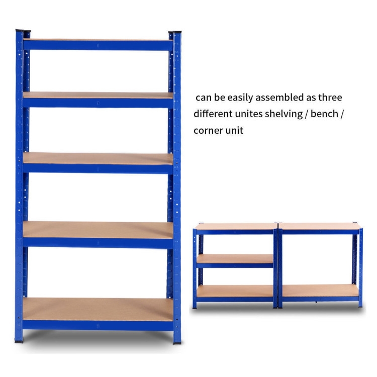 Blue Heavy Duty Metal Wood 5 Tier Adjustable Shelving Unit Garage Storage Rack